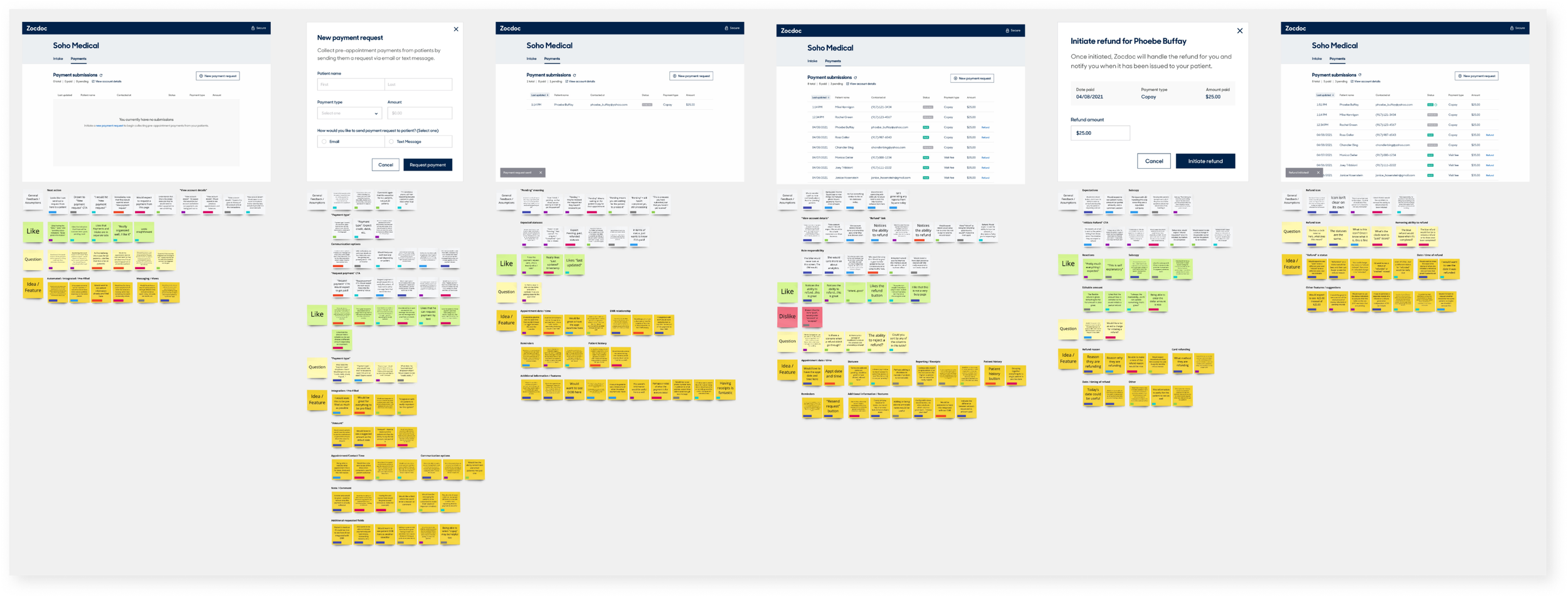 Our research indicated that a payment request feature would be more frequently utilized on a per patient basis than we saw with intake requests, as some practices can see patients as often as once per week. That said, it was important that the design account for a historical view of the requests and transactions that relate to a single patient.